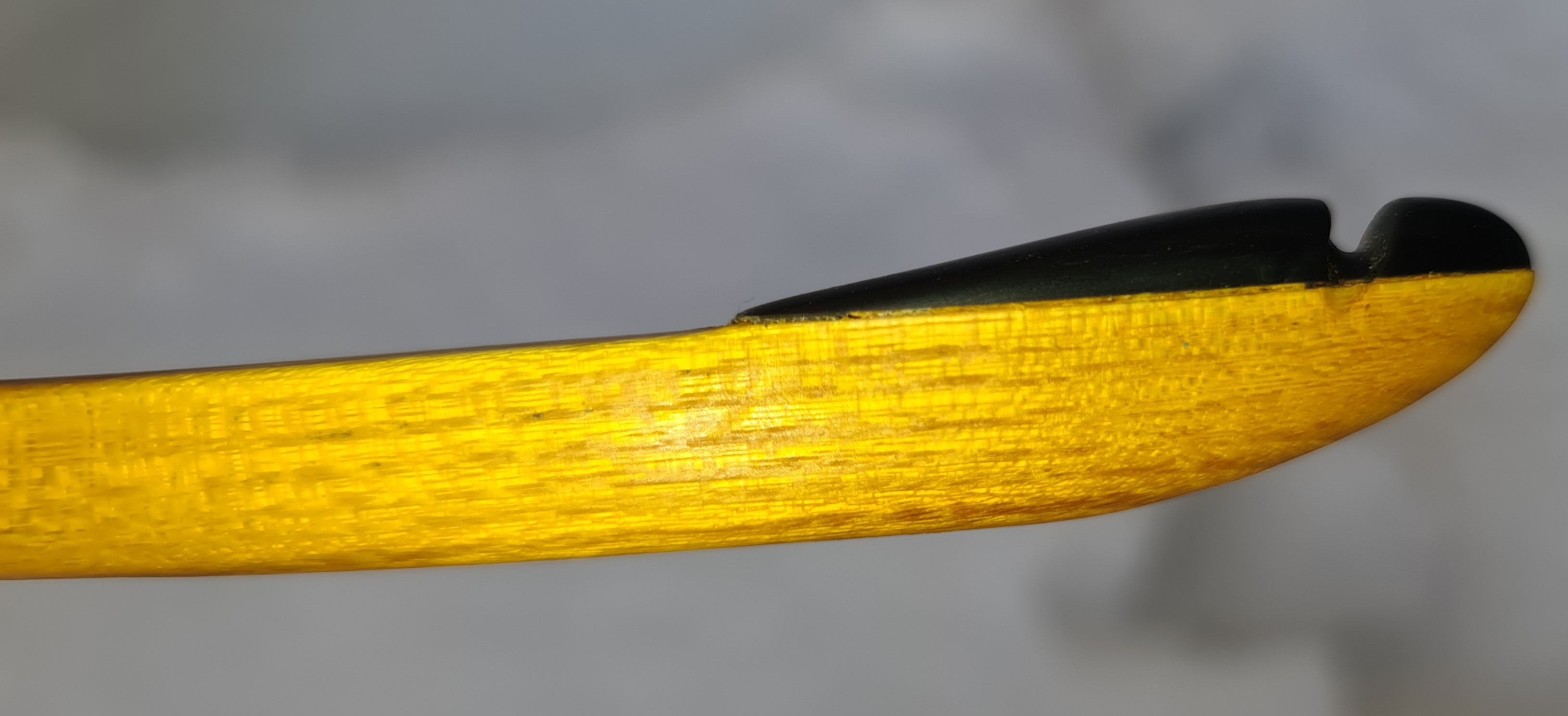 Das Wetter: Seitenansicht entspannt: Gesamtansicht Bauch: Bauch und Sehnenlage: Gesamtansicht Rücken: Bauch oberer Wurfarm: Rücken oberer Wurfarm: Bauch unterer Wurfarm: Rücken unterer Wurfarm: Griff bauchseitig und Fadeouts: Rückenansicht Griff mit Schnürung: Seitenansicht Griff mit Pfeilanlage: Draufsicht Tip und Overlay: Seitenansicht Tip und Overlay: Standhöhe: Auszug von links: Auszug von rechts: Und der Vollständigkeit halber noch ein Bild von der Tillerwand vor dem Finish (hier nur bis 26'' gezogen):