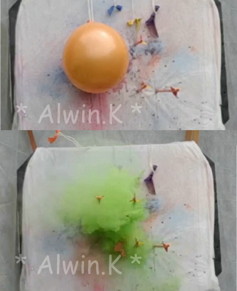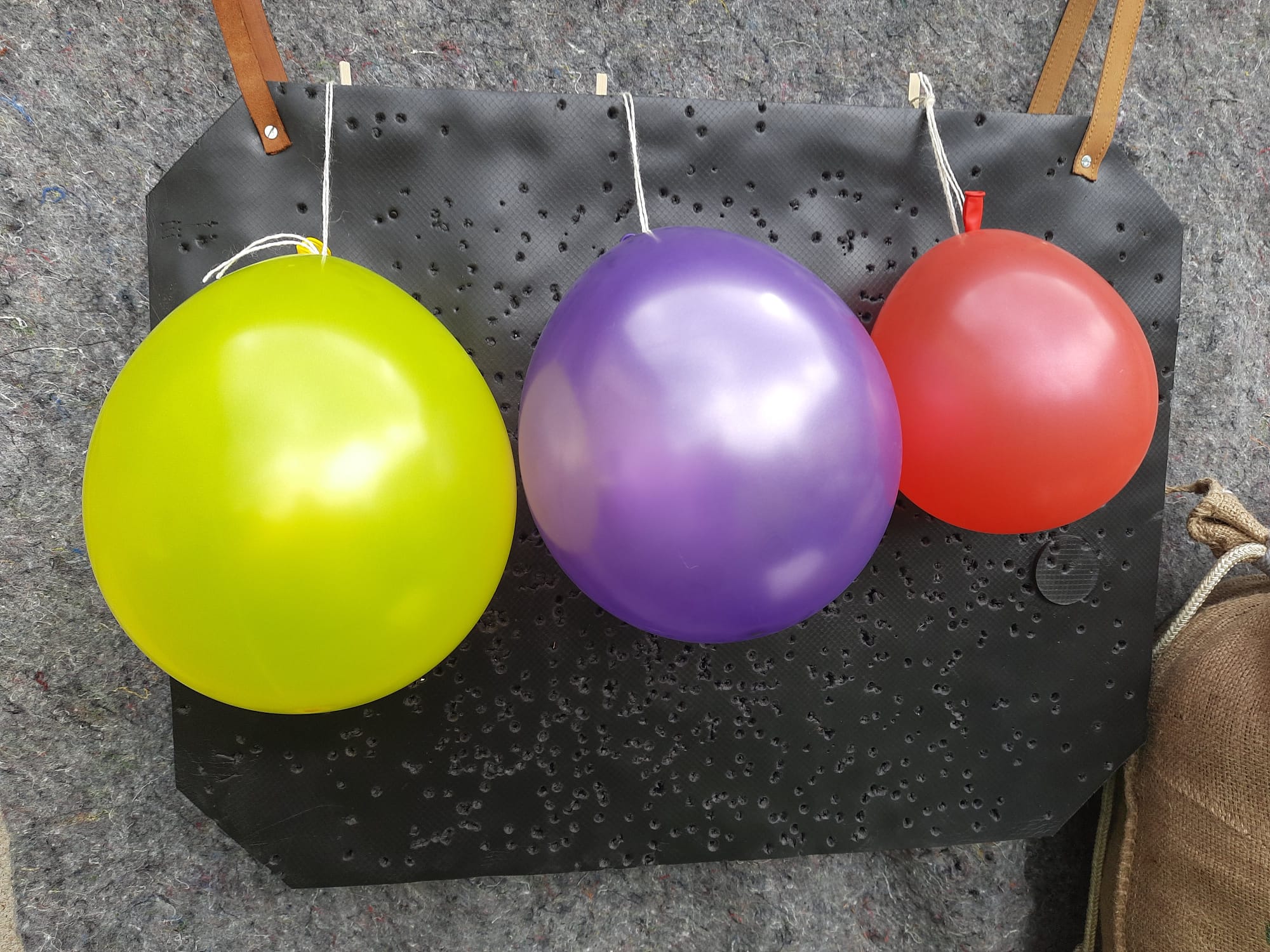Die Wasser-Idee habe ich schon ausgeführt (was im Übrigen schöne Zeitlupe-Videosequenzen ergab). Aber wie bekommt man als Nichtraucher (Asthmatiker) Rauch in einen Ballon - denn auf Mehl würde ich wegen der Sauerei (meine Frau