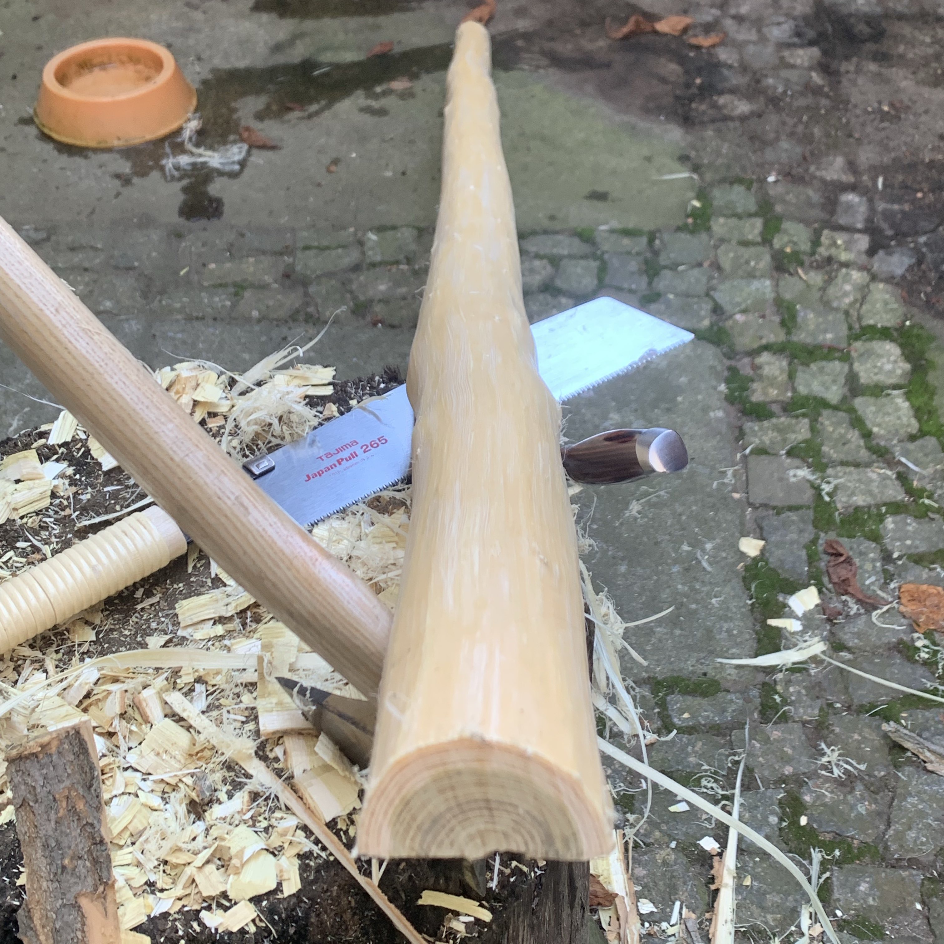Aber pinsel den Rücken vom Rohling ein, Robiniensplint reisst genauso wie der von der Roteiche.