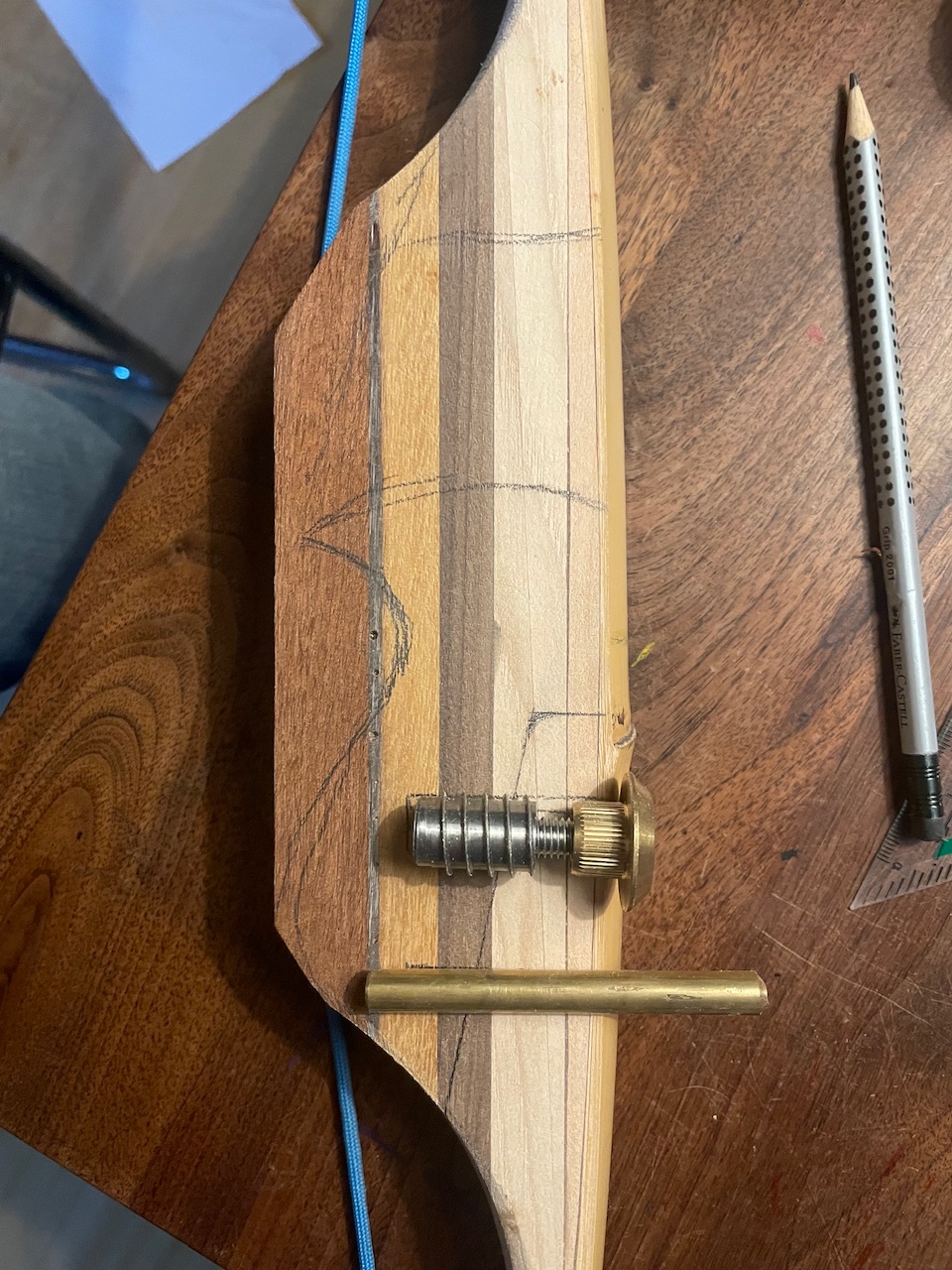 So kann man dem Tillerprozess auch die Romantik nehmen 😂. Was den unteren Wurfarm angeht denke ich dass das umsetzbar sein sollte. Du solltest hald nur darauf achten dass die Hülse die vorne im Wurfarm sitzt irgendwie unterpolstert ist, damit sich nichts im Bambus eindrückt. Und dass die Stelle zwischen Griffmulde und unterem Wurfarm nicht zu dünn wird. Da wirken enorme Kräfte... Und lieber rundlich ausarbeiten (siehe Foto)