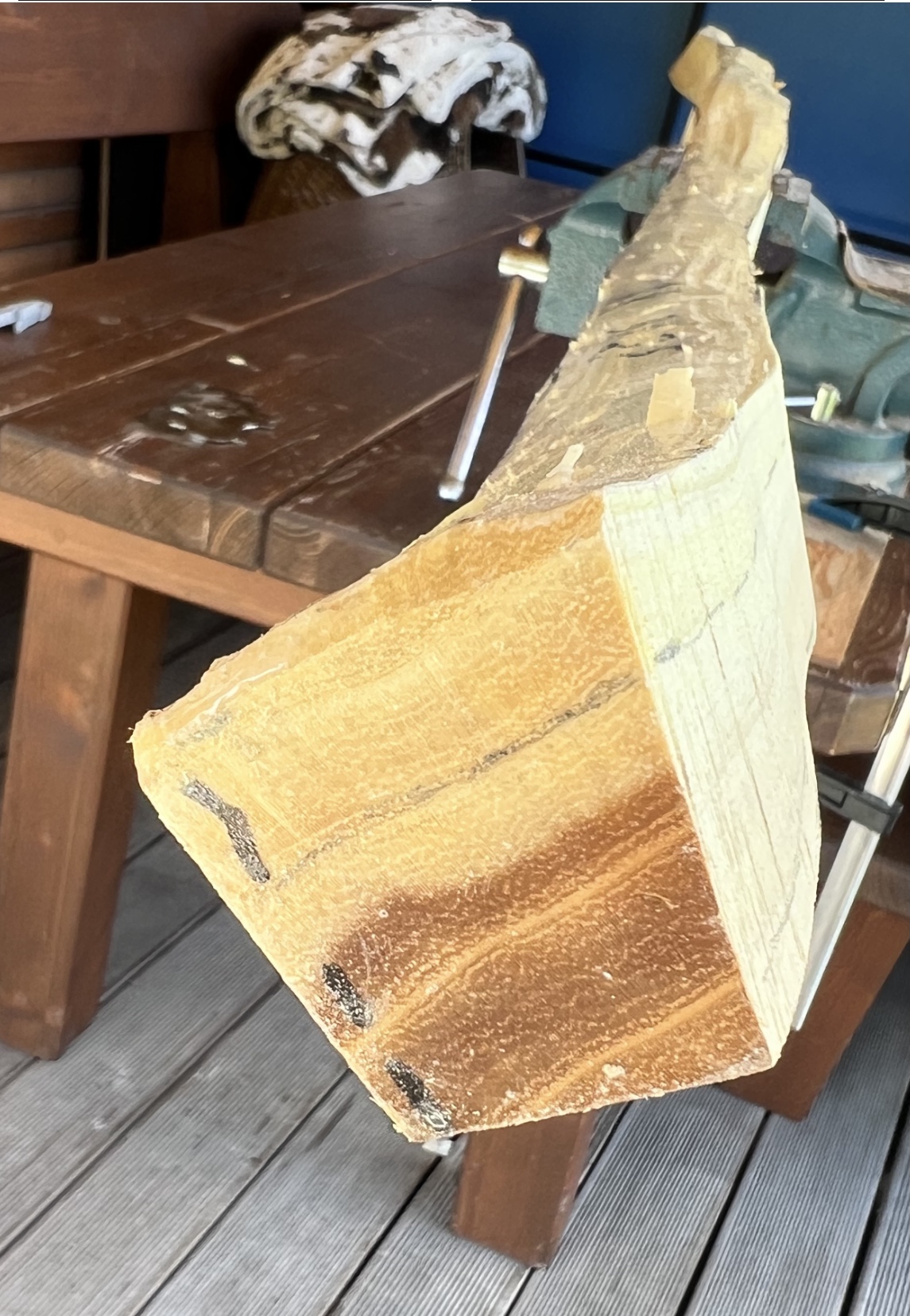 Ist kein einfaches Stück zum Tillern. Wird bestimmt nicht einfach mit dem stark reflexen Bereich im Griffbereich (erstes Bild).