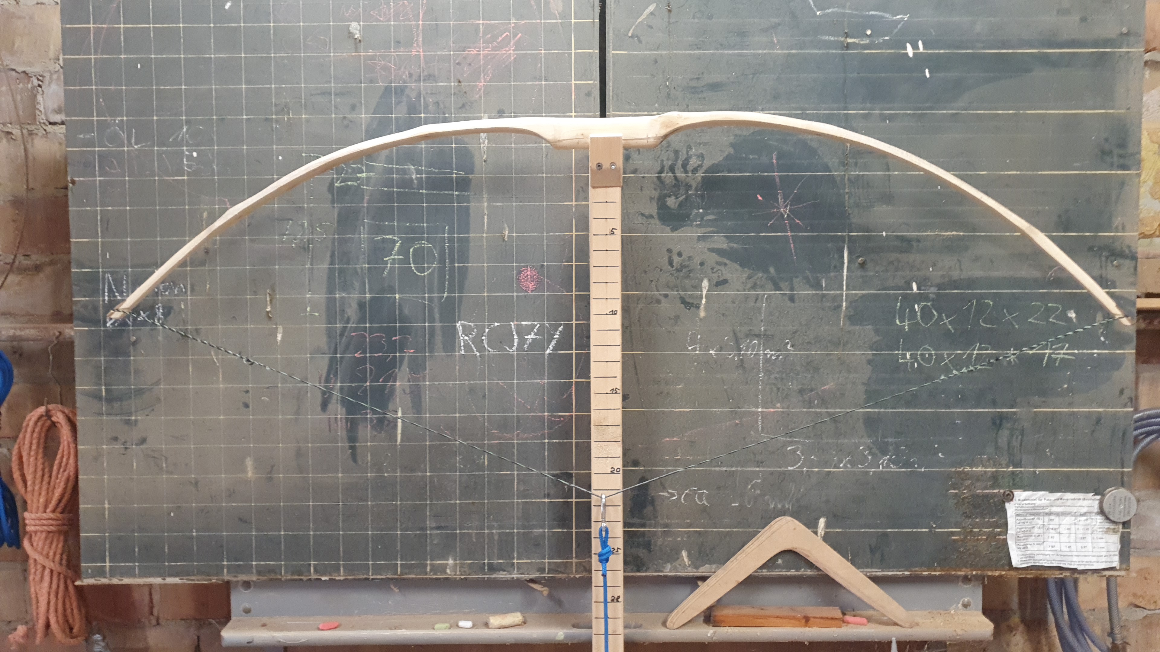 Anfangs habe ich versucht den deflexen oberen Teil mit Dampf zu richten was sich aber leider als nicht haltbar erwiesen hat. Ein weiterer Versuch beim Tillern bis ungef. Standhöhe war das Rösten des deflexen Bereiches über der Küchenhexe, dort hing er bestimmt ne gute Stunde. Danach war er deutlich fester, aber auch nicht dauerhaft.Ich habe beim Tillern dann zuerst den reflexen WA getillert um dann den deflexen anzupassen und anschließend noch mal zu härten. Das ist aber noch nicht vollendet.