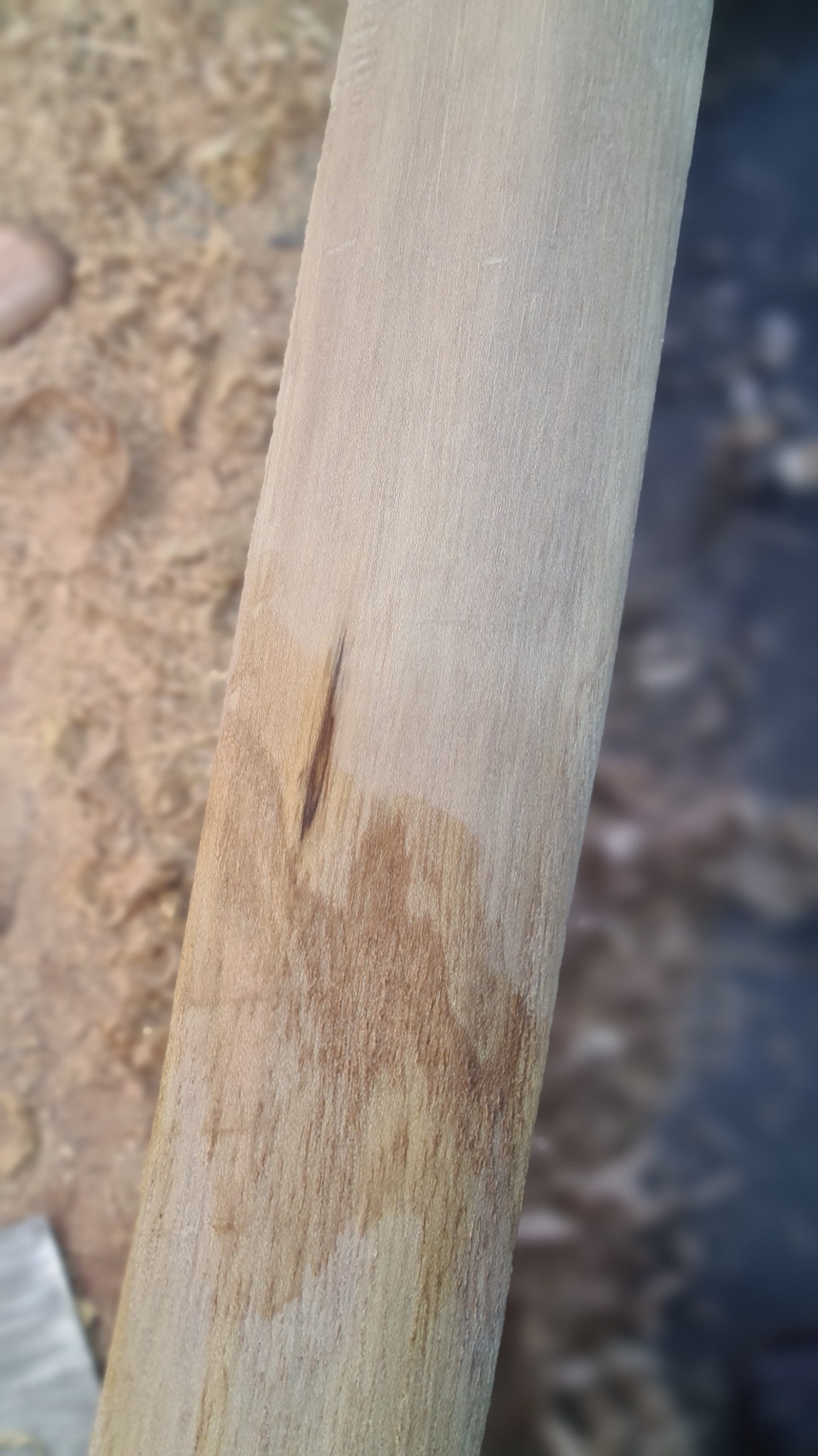 Mit den Fingernagel merke ich ein deutlichen weichen Teil. Ich wollt es schon auskratzen. Da das alles in Faserrichtung verläuft mach ich mir auch nicht viel Gedanken. Ich hatte nur mal ein Youtub Video gesehen , da hat der User den Bau nach Sichtung solcher Untegelmäßigkeiten unter der Rinde den Sl ...