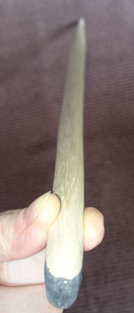 Nun gab das Stück mir die Maße vor Breite ca 3,4 cm an der breitesten Stelle (Griffbereich), Höhe ca 2,5 cm und die Länge leider nur um die 1,64 cm, deshalb auch etwas kürzer. Der untere Wurfarm ist kürzer als der obere. Die Mitte des Griffes ist wegen Materialmangel nur etwas versetzt. Unterer Wurfarm bis zum Griff ca 75cm, der obere ca 78cm. Grifflänge ca 11cm.