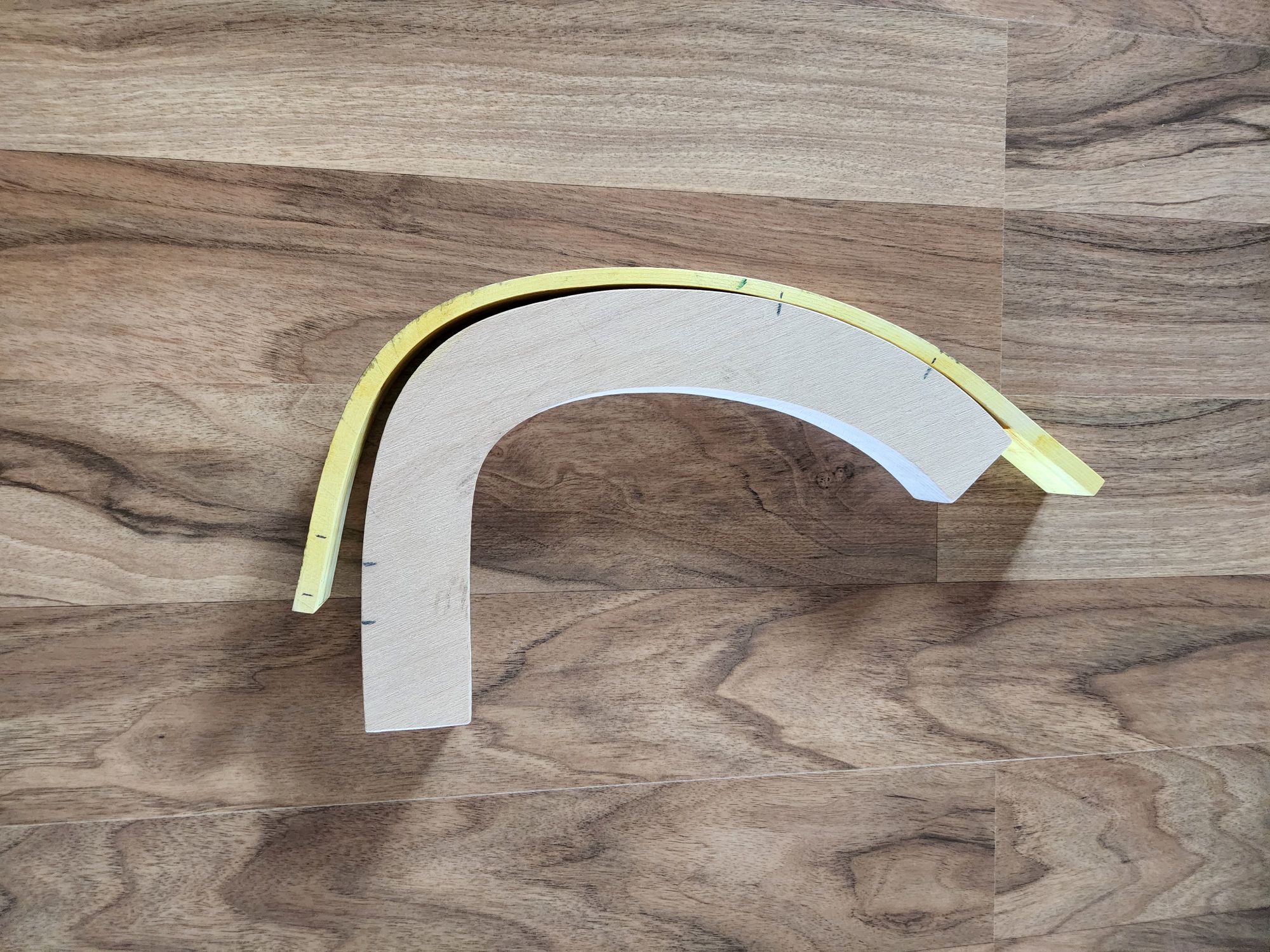 Zuerst wurden die Siyahs aus Osage gebogen. Dann hab ich mir eine Form gebaut, die gleich mehrere Arbeitsschritte ermöglicht. Mein Bambuskern ist aus 2 Streifen, die aus einem ganzen Rohr stammen, in dieser Form laminiert. Im Anschluss wurde der Bambuskern mit den Siyahs in dieser Form verklebt. Bislang alles mit Uhu Endfest 300. Und im weiteren Verlauf werde ich in dieser Form auch das Horn an den Kern kleben.