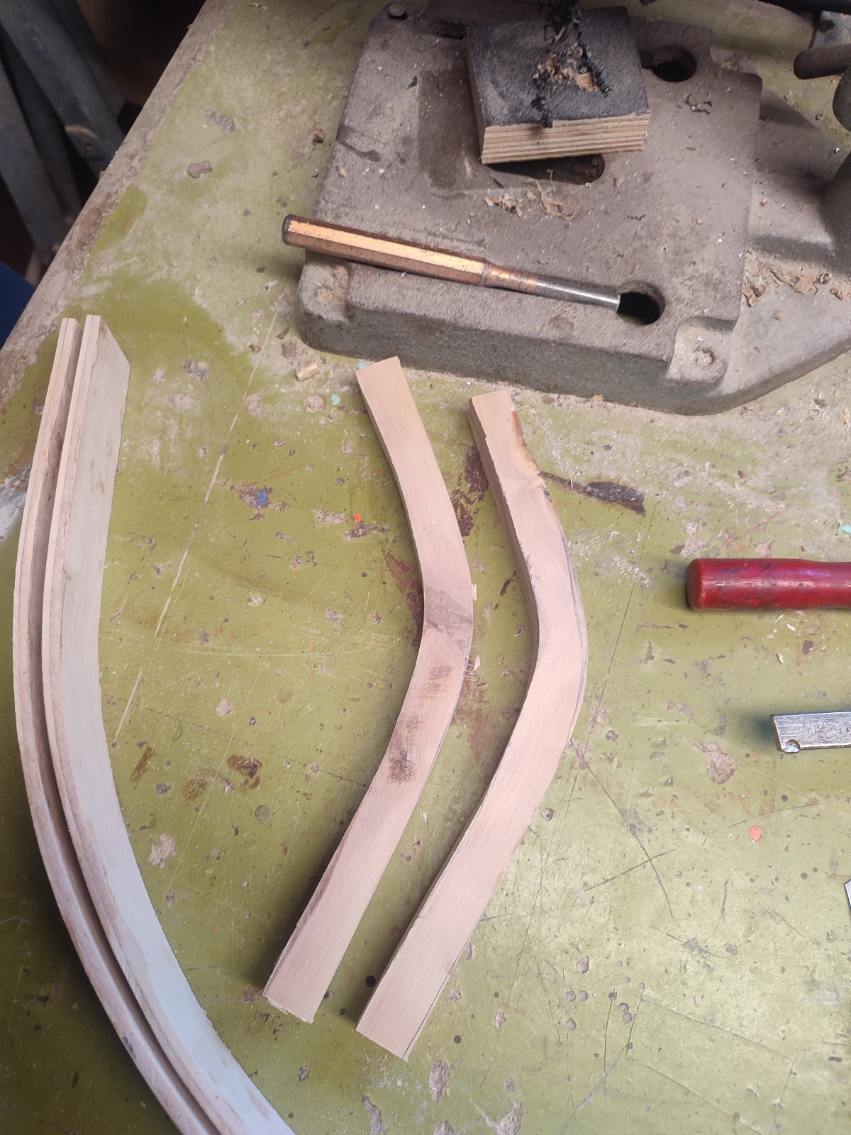 Ich wollte mit den Laminaten einen anderen Weg einschlagen. Ich stresse das Holz nicht durch biegen und die gebogenen Laminate sind gerade aus der Form gekommen. Alles Vorteile , mal schauen, ob mein Plan aufgeht..