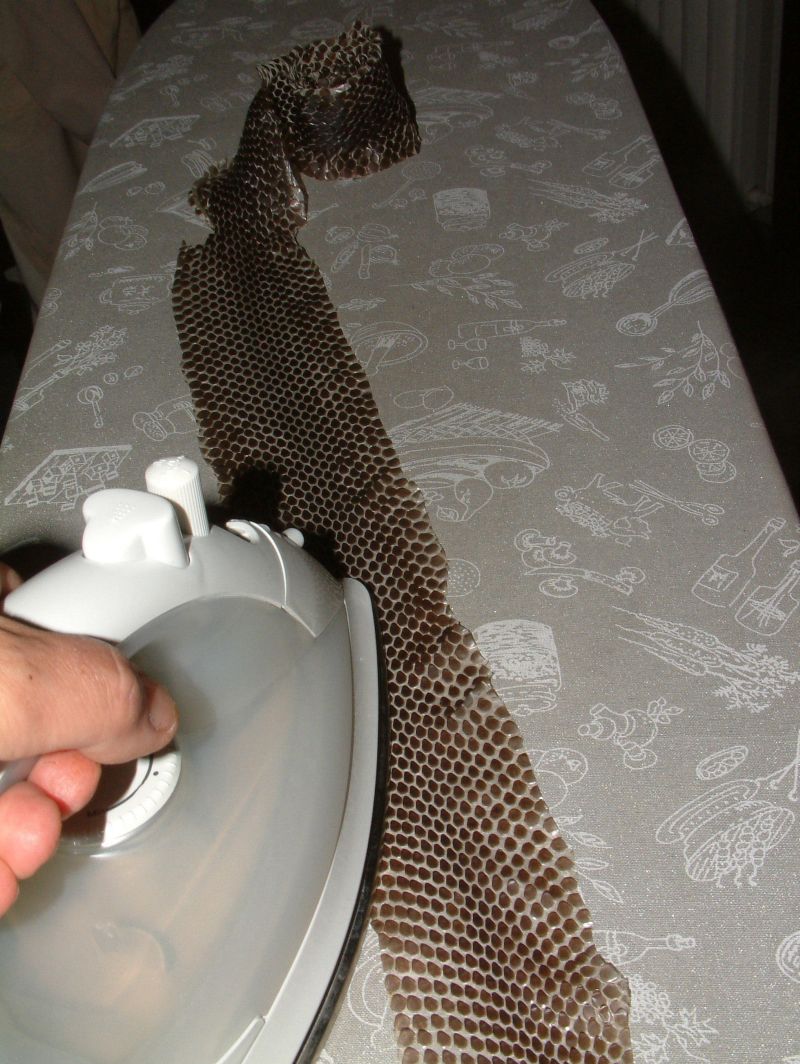 Ma sieht, dass das Lösungsmittel die Hornhaut nicht angreift und auch die reingebügelte glatte Oberfläche erhalten bleibt.