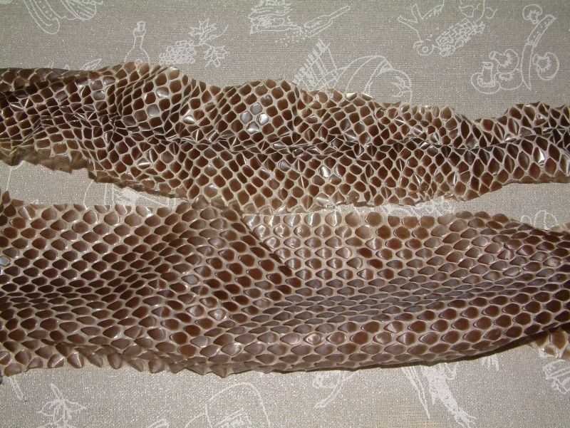 Das Natternhemd vom Züchter sollte nicht zu groß sein, weil kleinere Schuppen sich besser verkleben lassen als große. Ein Natternhemd ist ein räumliches Gebilde: Die Schuppen wölben sich hervor und das gibt später Luftblasen beim Verkleben.