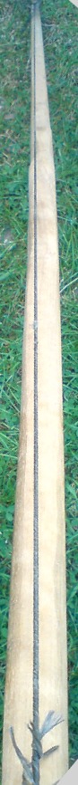 Bei deinem Bogen besteht noch die Möglichkeit, rechts oben seitlich Material anzuleimen (so auf 20 cm Länge ab Tipp) und dann die Kerbe nach rechts zu verschieben, damit die Sehne rumkommt.