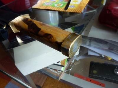 So, noch ein bissi war zur Arbeit. In beiden Fällen hab ich Messing für die Heft+Endstücke verwendet, beim Zweiten mit Verzierungen mit Lötzinn. Geklebt hat ich mit Uhu Endfest, Finisch des Holz mit Leinöl-Firnis.