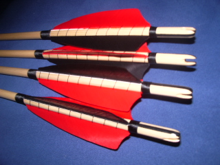 Zur bearbeitung: Zuerst haben die Schäfte 2 Tage in einem Tauchrohr voll mit Leinölfirnis verbracht. Das wurde danach abgerieben und nach dem trocken leicht angeschliffen. Dann kam eine schicht lack (klarlack ,Matt) drauf. Federn wurden mit uhu hart und von hand aufgeklebt danach auch von hand gewickelt. die Nocken wurden ebenfalls mit Uhu hart geklebt. die Spitzen habe ich mit fluessigem blei gefuellt um die pfeile auf ein exaktes gewicht zu bringen. danach wurden sie mit heißkleber am schaft befestigt.