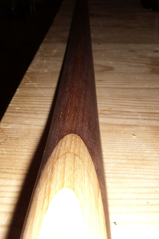 Der geht auch echt gut. Zumal das Holz absolut 'rein' ist und am Belly keinerlei Knötchen oder sonstige Unregelmäßigkeiten aufweist. Von Druckfestigkeitsproblemen nicht die Spur.