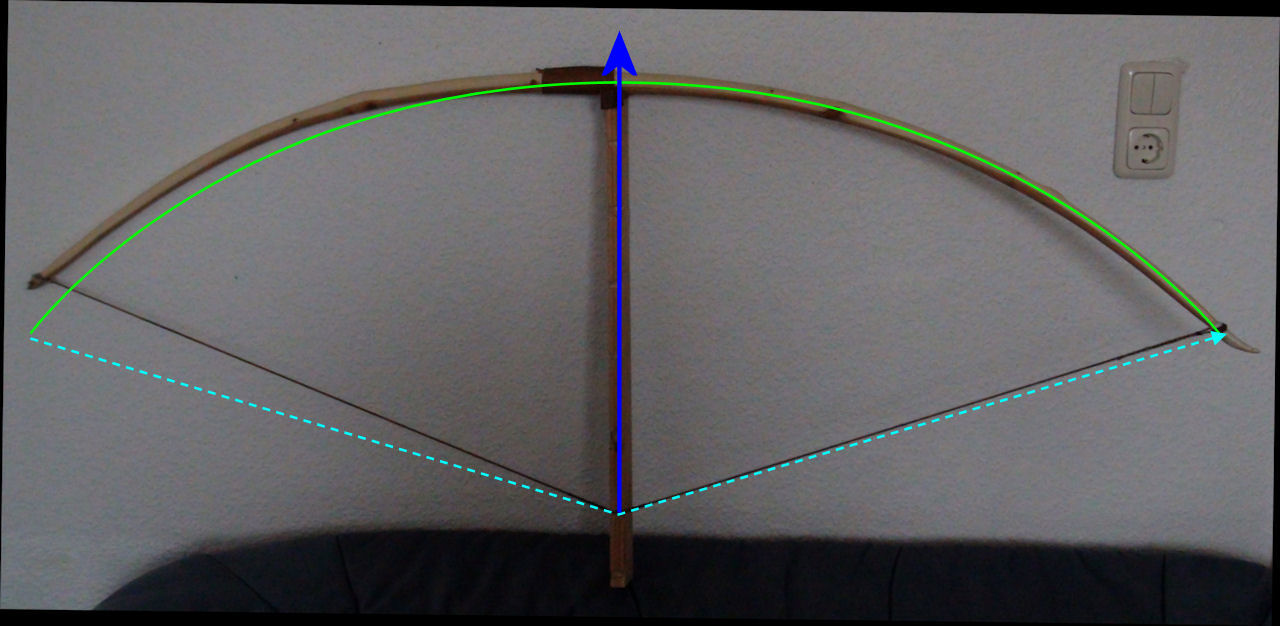 Ich habe es so gerlernt das wenn man den unteren Wurfarm stärker lässt als den oberen, der Pfeil mit leichtem Auftrieb die Sehne verlässt und man sich somit nicht die Hand am Bogen dur die heranschnellenden Federn verletzt. Demnach müsste die Tillerung auf dem Bild nahezu Perfekt sein. Korrigiert mich bitte wenn ich falsch liege... ach ja... überrigens sehr shcöne Arbeit!