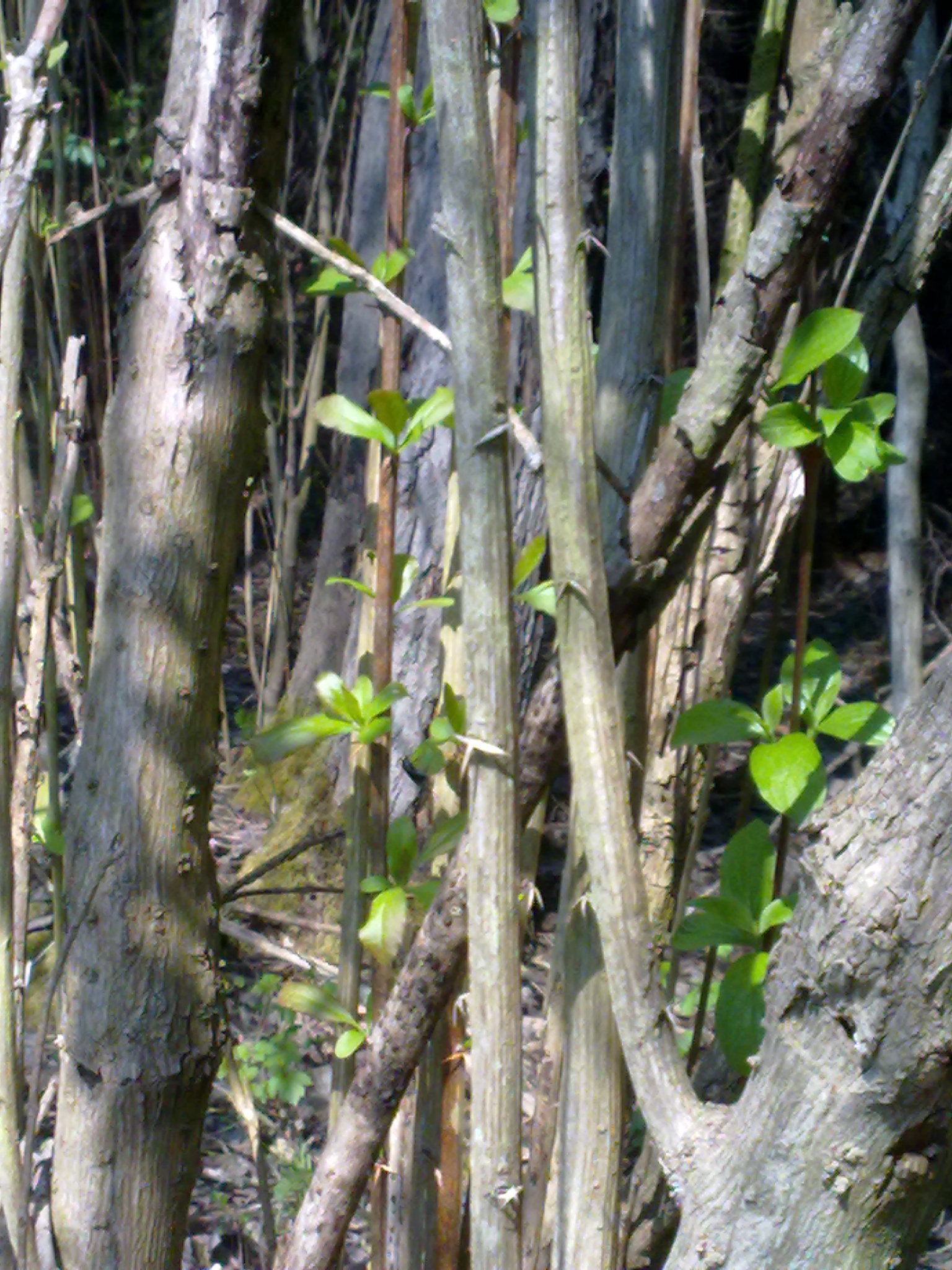 Meine Fotos sind wirklich etwas dürftig, daher war ich heute nochmal im Wald und habe neue gemacht. An einigen dünnen Zweigen sind tatsächlich Stacheln (oder Dornen?). Das Stämmchen auf einem Foto hat in ca. einem Meter Höhe einen Durchmesser von etwa 40 mm und ist ungefähr 5 Meter hoch. Die Blätter sind fast unsichtbar gezackt. Ich hoffe, dass die Bestimmung jetzt leichter fällt. Nochmals herzlichen Dank und Frohe Ostern wünscht Wim!