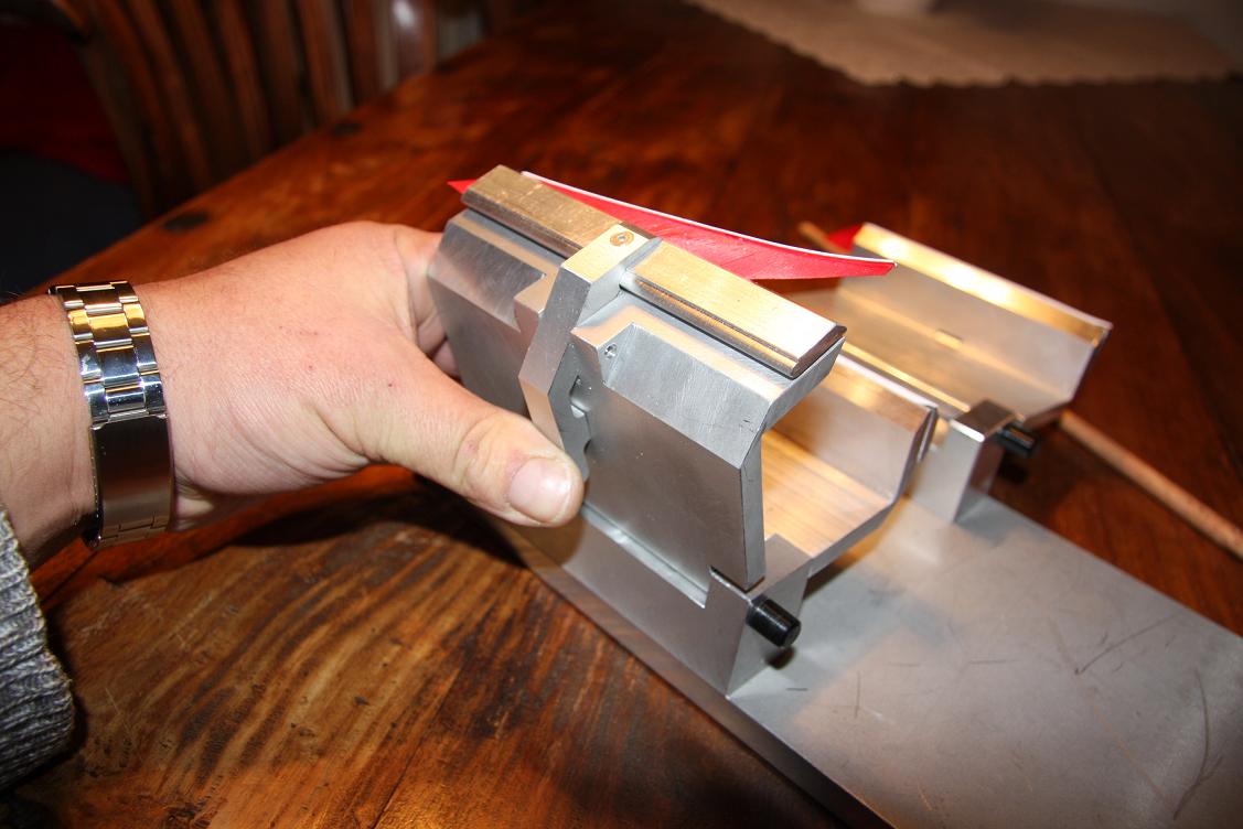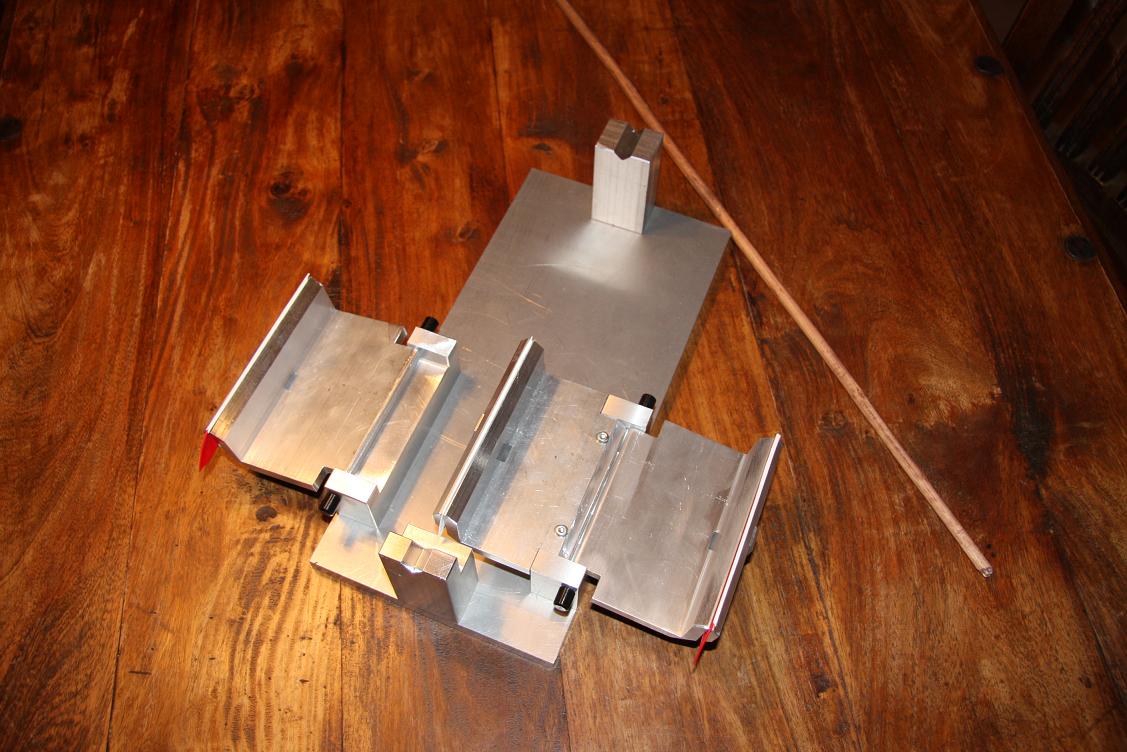 fabrizieren.3-fach Befiederer komplett aus Alu zum ausschwenken der Klammern.Klar es gienge sicher auch mit weniger Aufwand, aber so machens eben die Metaller ;D Unter den Spannbügeln sind kleine Druckfedern eingebaut, die den Hebel zudrücken, kann man auf den Bildern nicht sehen.Um verschiedene Durchmesser zu befiedern kann man unter der waagerechten
