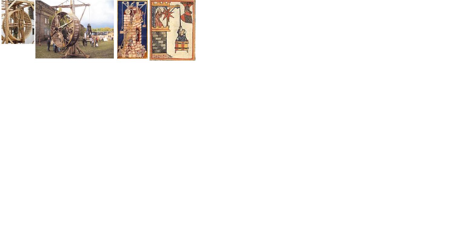 Als Beispiele seien genannt Drechsel-/ Drehbank (s.o.), Töpferscheibe, Kräne, Flaschenzüge, etc., vielleicht auch ein paar ausgefallene Waffentechnische Innovationen...