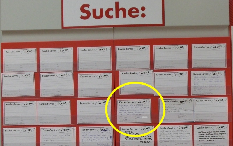 Zudem verteile ich an jeden Bauern und Waldbesitzer so ein "Bettelblatt" und im Winter (Gartenfällsaison) hänge ich Zettel im Supermarkt auf.