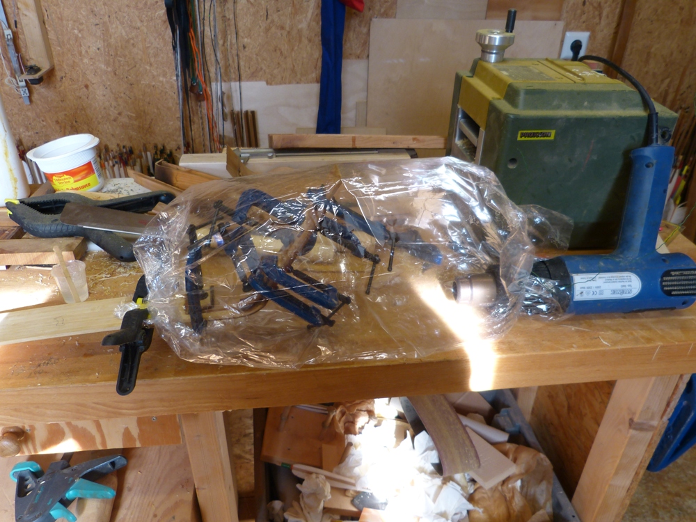 Voila, HLP auf 120° gestellt und ca. 15 Min blasen lassen. Dann aus (bzw. auf kalt) und schon ist die Klebung fertig.