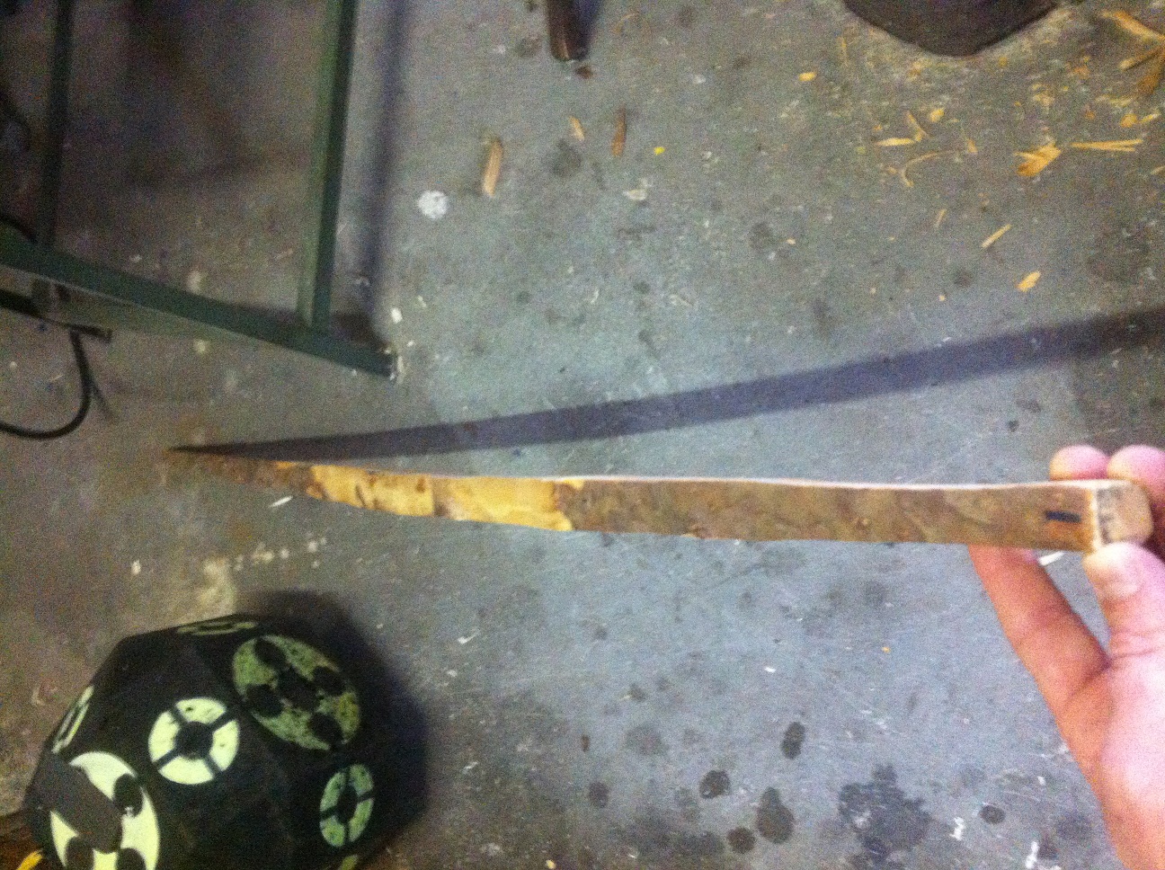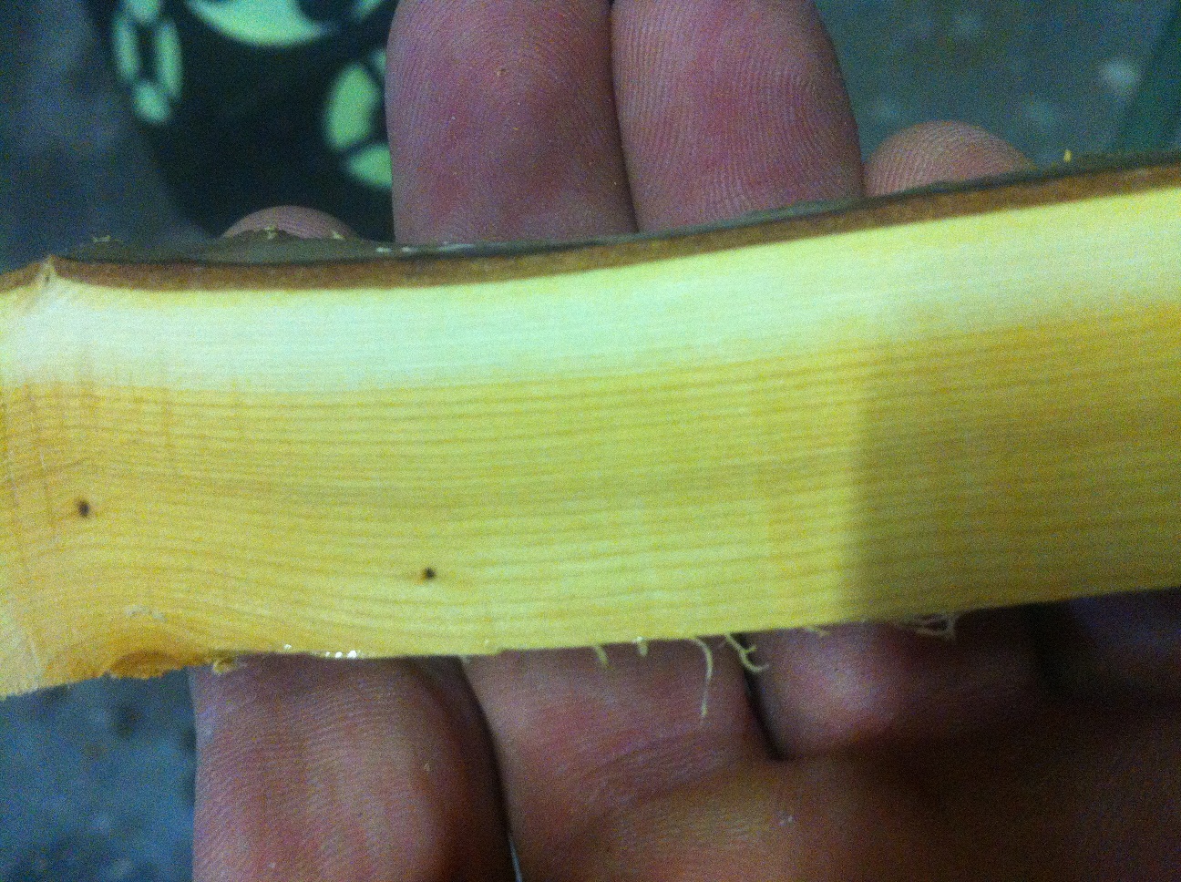 Ich habe ein 167 cm Stück Eibe die leider über die gesammte Länge schief und ganz leicht verdreht bist.