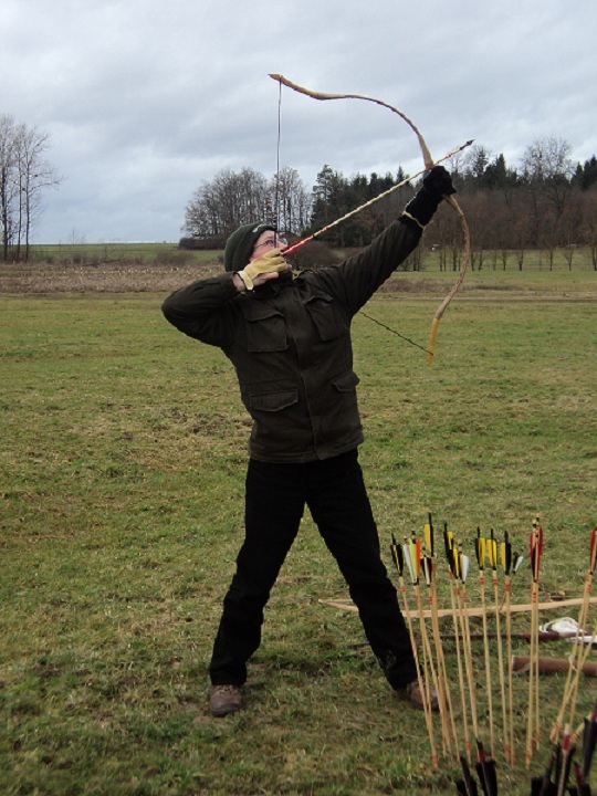 Wetter sehr windig, nasskalt und Wiese sumpfig ( fast wie in Azincourt hä hä, leider hat die in den letzten Tagen zu viel Regen abbekommen. Aber sonst wars ein rießen Spass. (Das Ziel war beim Treffer auf ca. 150 Schritte gesetzt.)