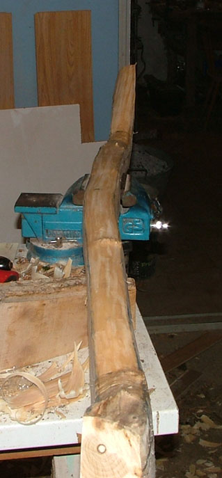 Ich nehme übrigens nur der Rinde runter wo später der Bogenrücken ist, der rest kommt dann beim schnitzen/schneiden von alleine weg.