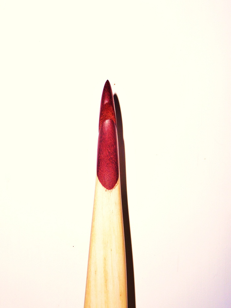 Ich hab ein wenig weiter an den Tips gearbeitet. Die Kerben sind eigentlich immer noch zu scharfkantig, aber solange ich noch die Baumarktschnur als Tillersehne nehme, wird sich das auch nicht so schnell ändern.