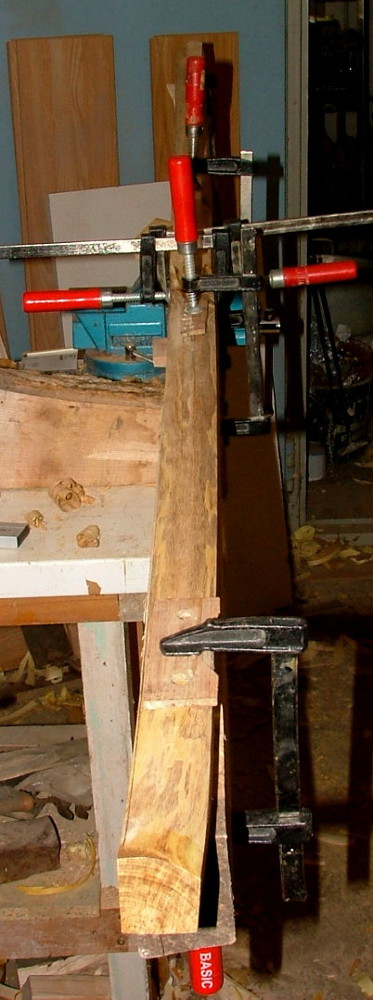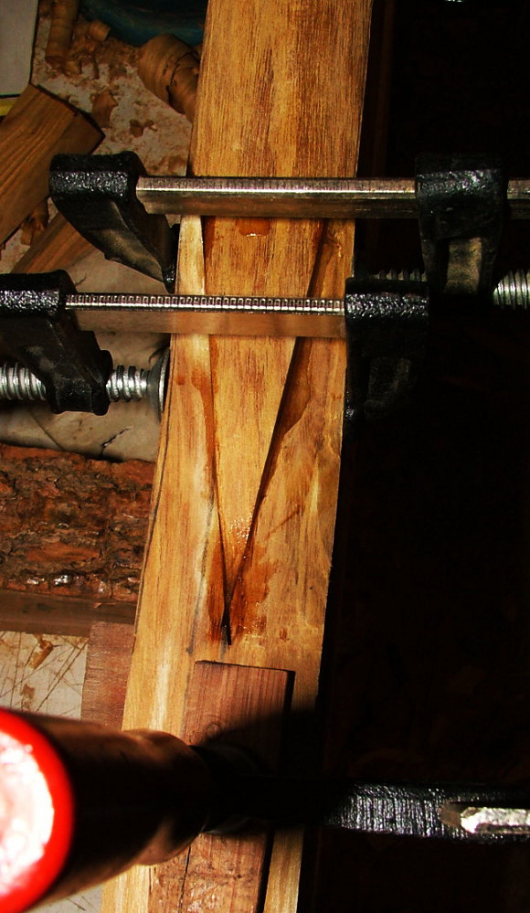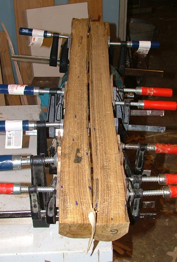 nach dem Abrichten der Billets hab ich diese dann gegeneinander zum Trocknen verspannt bis sie gerade waren und das gab gestern einen ziemlich spannenden Moment beim Abnehmen der Zwingen.