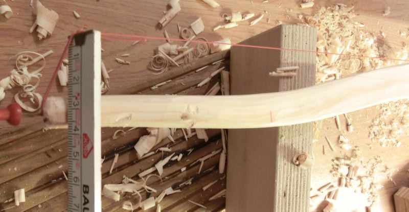 Falls das nicht geht, kann man Eibe gut dämpfen und biegen. Dazu unbedingt mit Latten ein Richtwerkzeug herstellen, an dem man gut festzwingen kann.
