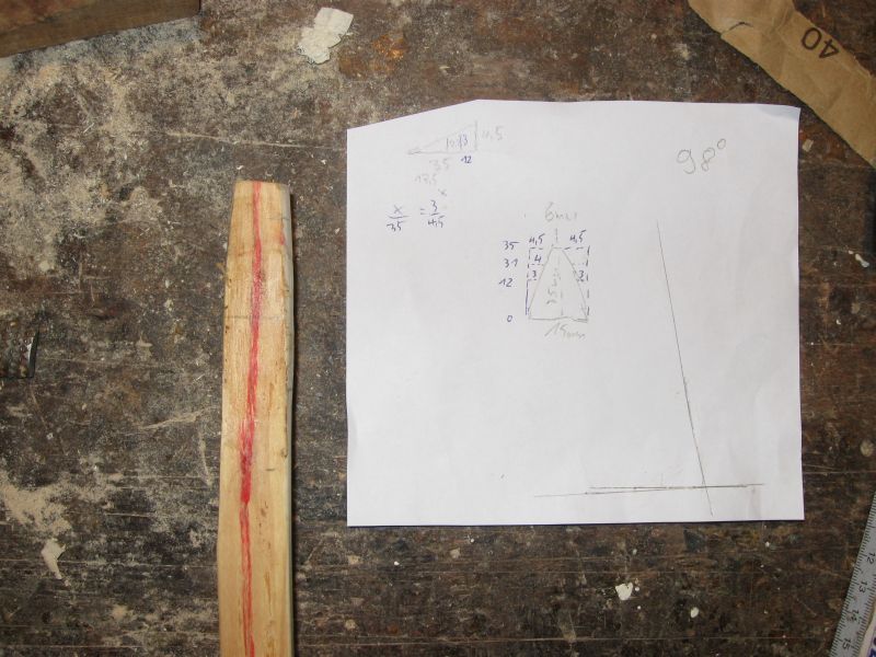 Zum Verkleben des Spleisses hab ich einen Wurfarm auf einem Hainbuchenpfosten fixiert und für den anderen entsprechende Unterlagen vorbereitet um den Reflex richtig psitionieren zu können. Dann die Klebeflächen gut entfettet und mit Epoxy verklebt.