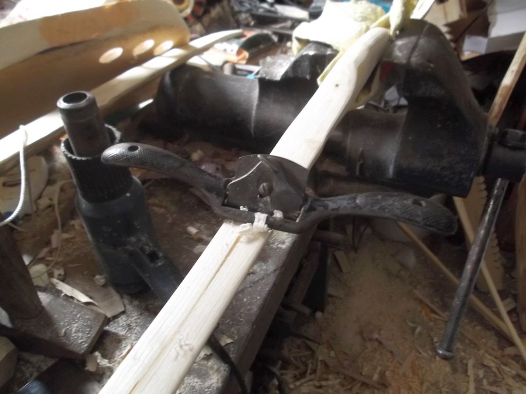 Bilder von den einzelnen Arbeitsschritten hab ich nicht. Ist aber auch nix spannendes passiert. Die Wurfarme hab ich mit Ziehmesser, Schweifhobel und Schweifhobel runtergearbeitet.
