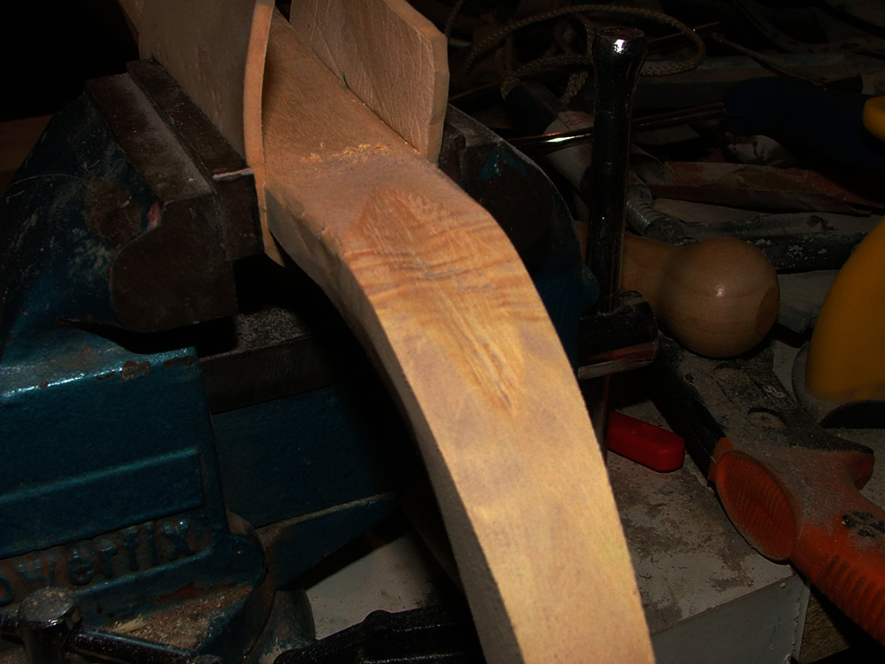 ein wenig sei vor der Präsentation morgen schon verraten, ein weing konnte ich im Finish dieses Bogens nicht auf eine Schnitzerei im Griff verzichten.