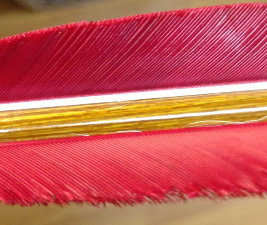 trasher hat geschrieben:Leg mal die Leitfeder nach innen und Du wirst vermutlich Ruhe mit der ausgefransten Feder haben.