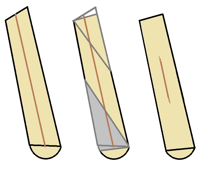 Du begradigst den, indem Du an jedem Ende die HÄLFTE der Verdrehung weg schneidest: