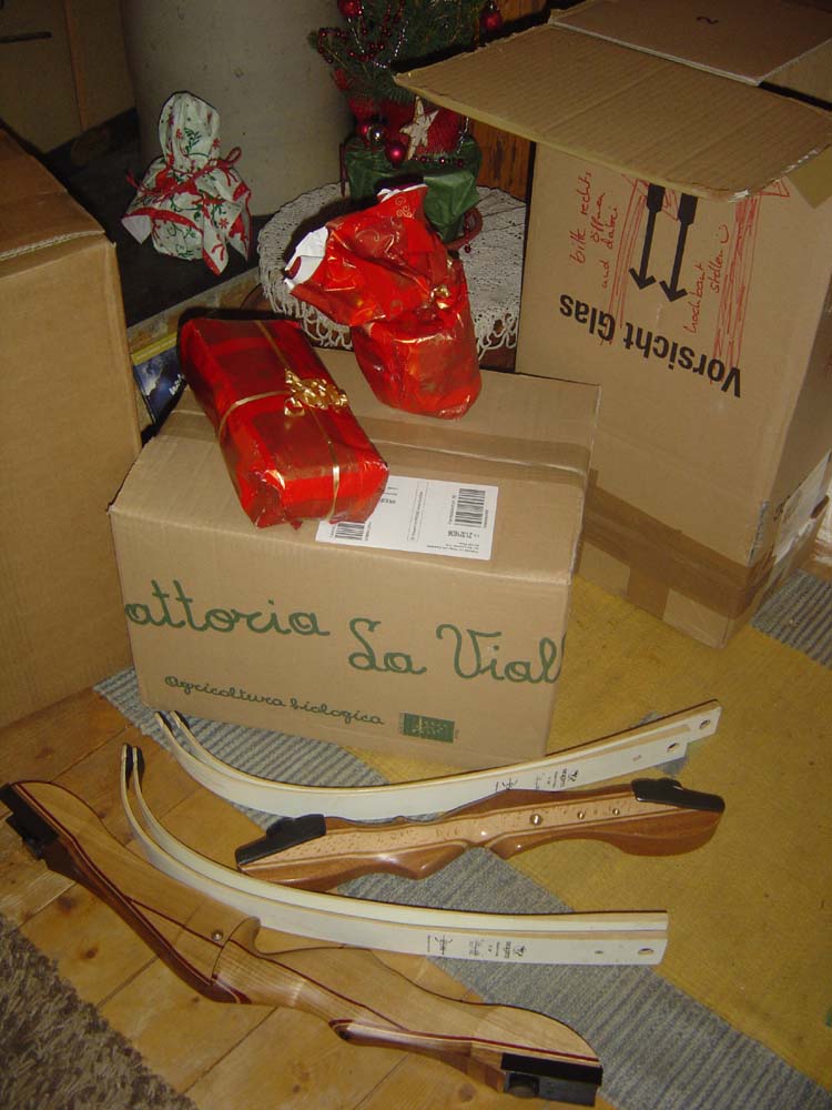 und dann der Wahnsinn beim Auspacken..... ein Recurve......... noch ein Mittelstück..... und noch was extra Eingepacktes