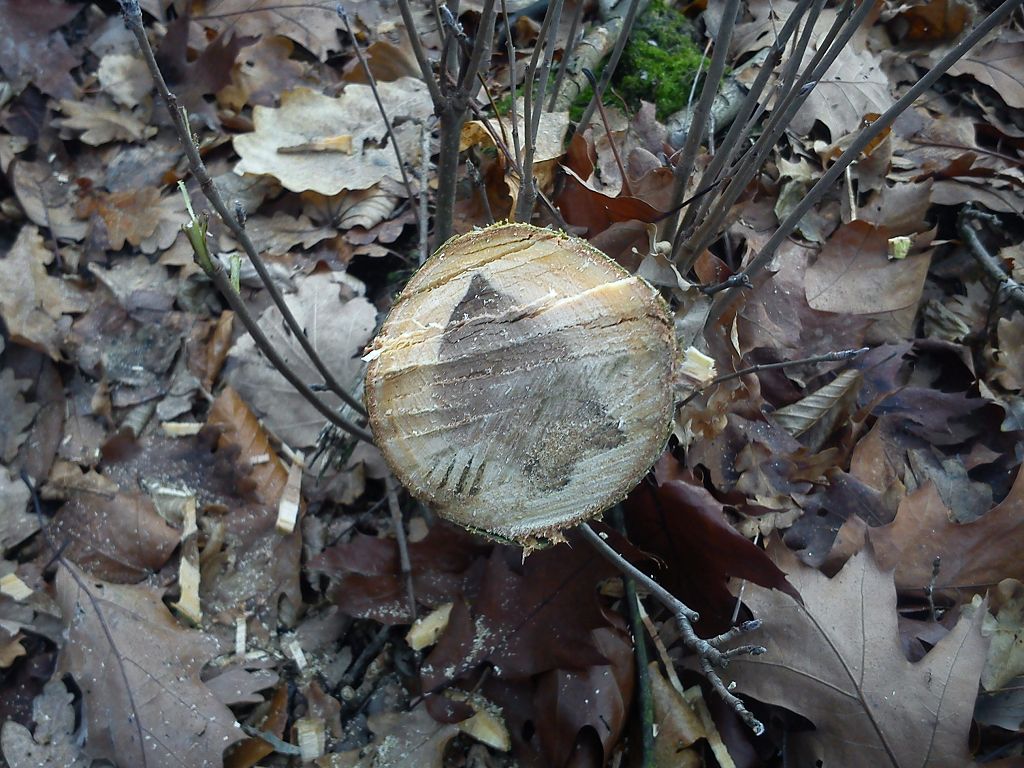 Der lange Kandidat wurde von mir auf 170cm gekürzt und der Bauch wurde bis zum Kern freigelegt Dann habe ich ihn entrindet, sowie die Enden und den Rücken versiegelt. Jetzt lass ich ihn erst mal ein paar Tage im kalten Keller liegen.