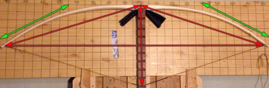 Die grünen Linien bedeuten das ich in diesen Bereichen Tillern will um mehr Biegung zu bekommen um den Bogen in den anderen Bereichen zu entlasten.