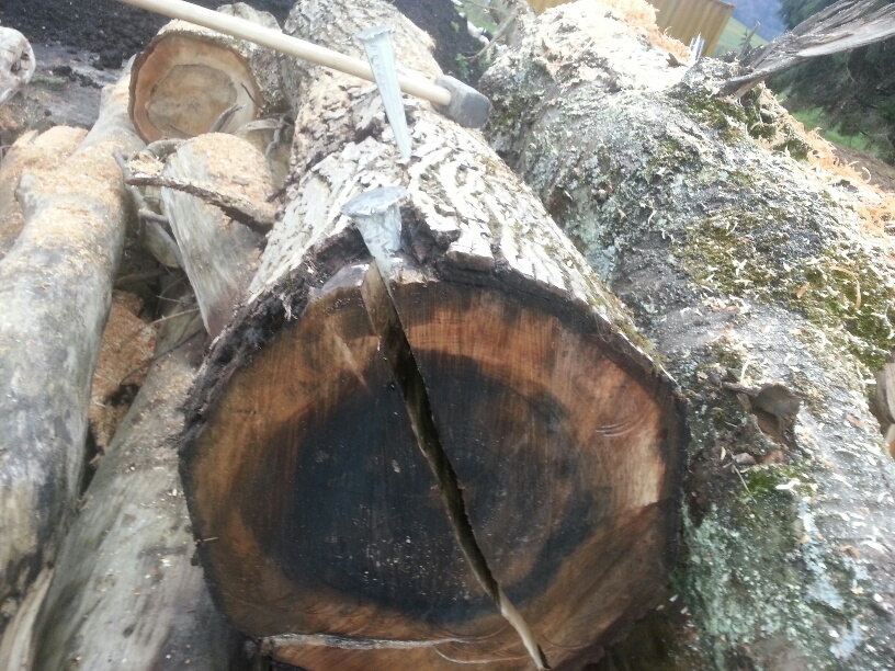 So, habe gestern mit einem Kollegen den Kirsch und den Wallnussstamm gespalten.