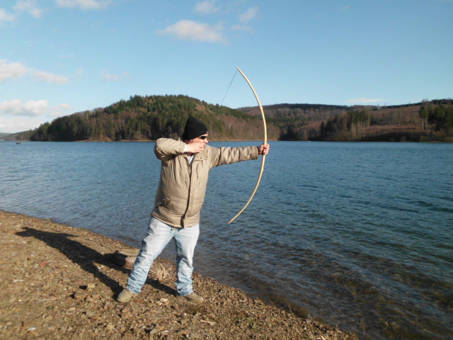 Die Pfeile gehen sehr flott raus, ein Bogen den man halt nur mit Messer in der Natur gebaut haben könnte und gut funktioniert.