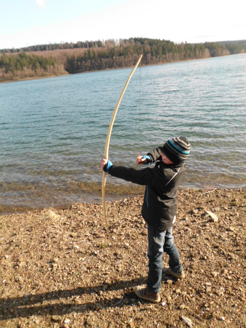 Trotz alledem bin ich einigermaßen zufrieden mit dem Resultat, die Pfeile fliegen nach vorn und außerdem liebe ich das Holz und seine Bearbeitung. Die Schwachstelle unten hätte noch etwas Aufmerksamkeit vertragen, ebenso wie die Enden in ihrer Biegung. But thats Saplingturnier...