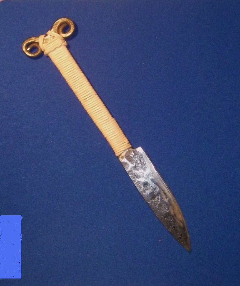 MA-Ambiente, Stoßdämpferfederstahl, Schneide selektiv gehärtet, Griffwicklung mit 1,5 mm Ziegenlederband...