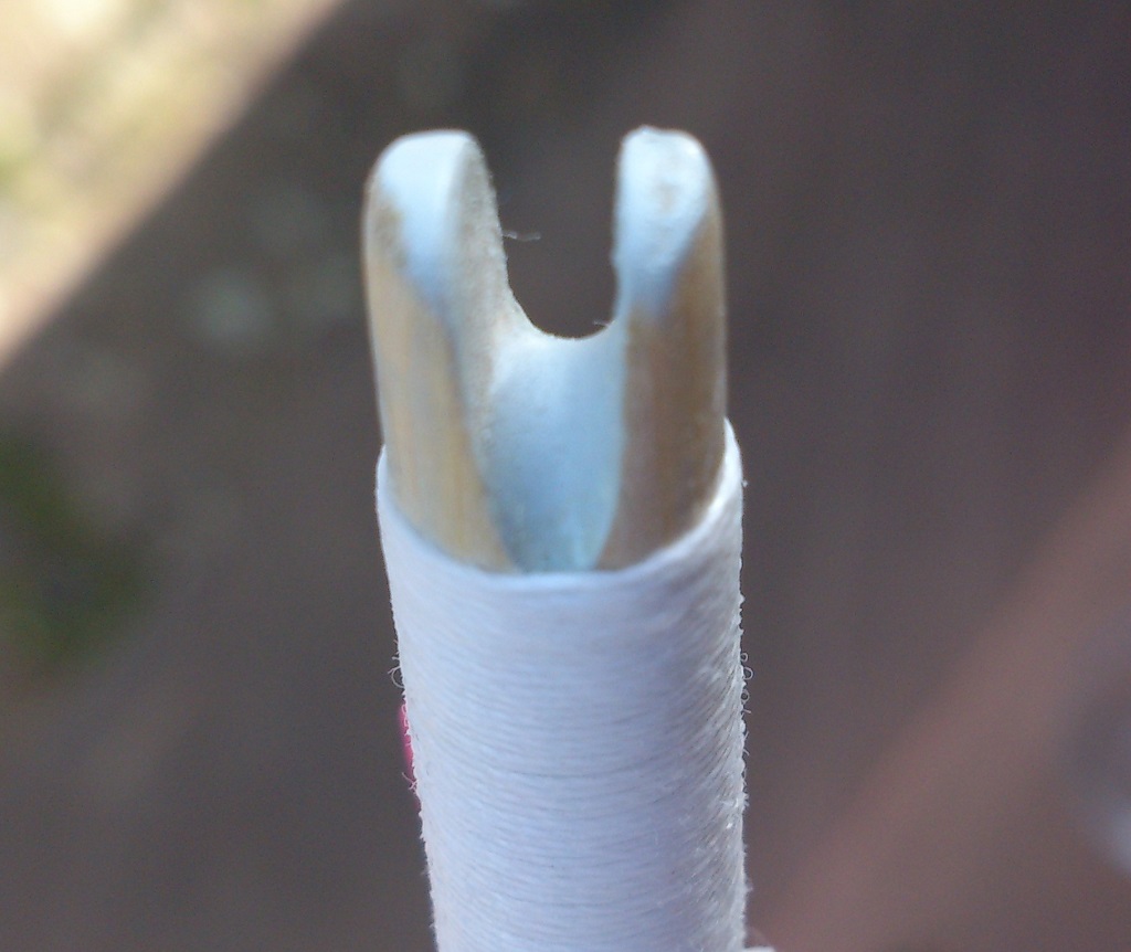Das Horn für die Nocken habe ich von altem Besteckgriffen aus dem Brockenhaus. Für die Nockenkerbe habe ich mir einen Fräser geschliffen, damit die schön auf die Sehne 'klicken'. Die Schäfte sind Fichte und die Spitzen, ebenfalls fertig gekauft, Stahl.
