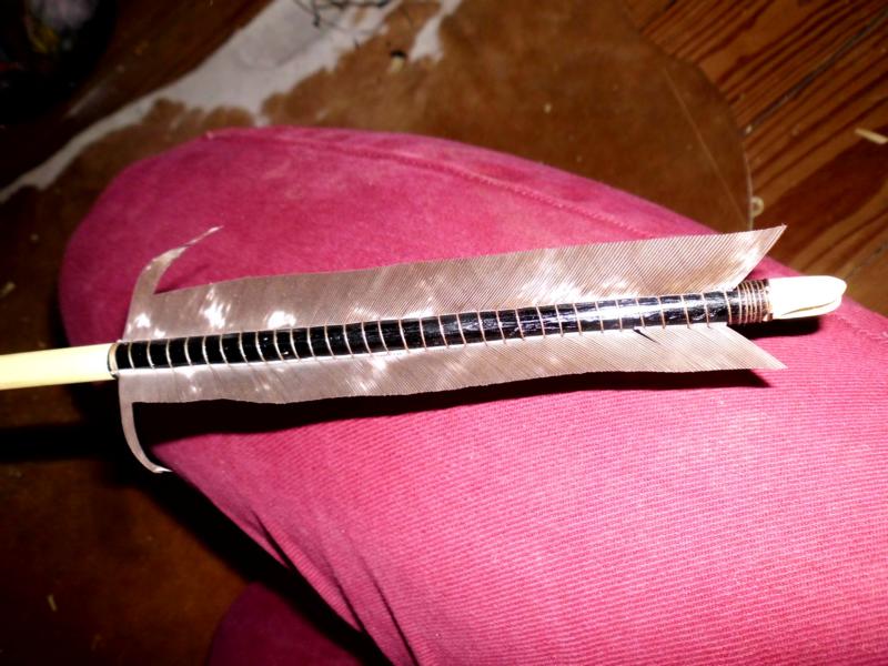 Gedoch wurden so gut wie alle Befiederungen vom Kiel gezogen, um möglichst wenig Kiel am Pfeilschafft zuhaben, damit die Wicklung möglichst eng am Holz anliegt und nicht aufgescheuert wurde. ;)