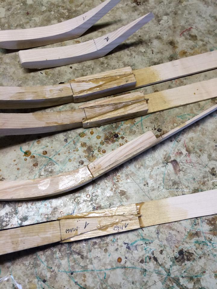 Wir haben mehrere leckere Kompositbögen in der letzten Zeit gebaut / bauen fortlaufend (ohne Möbelschrauben und moderne Klebstoffe, gerade hängen hier eine Handvolle Bögen beim Trocknen) und am Donnerstag geht es in das Studio und werden die Fotos auf unserer Homepage präsentiert.