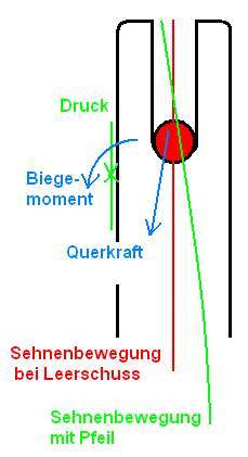 Ausgenommen beim RC-Bogen mit Centershot, treten beim Ablass nicht unerhebliche Querkräfte auf: