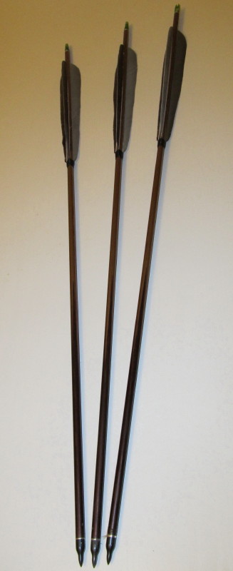 Dann haben wir Nocken geschnitz, lasiert, lackiert, geschmirgelt, Pfeilfedern geschnitten, nochmal lackiert und geschmirgelt, befiedert, gewickelt, bemalt, nochmal lackiert und zum Schluß noch Spitzen draufgemacht (soweit vorhanden).