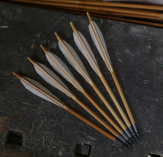 Sie hat eine Nut im Schaft, um auch Bolzen mit Dreifach - Befiederung schiessen zu können; meine Bolzen sind alle aus gebrochenen Pfeilen entstanden, wiegen mit 125gn Spitzen ca. 20g.