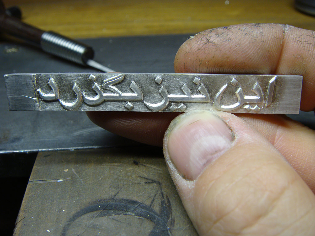 Ist quasi "verkehrt herum" graviert... nicht weil man es von rechts nach links ließt, sondern weil hier die Fläche abgetragen wurde und die Schrift erhaben stehen gelassen. Normal graviert man ja Linien vertieft in die Fläche, da hat man weniger zu schneiden. Ich wollte hier aber eben die Schrift spürbar...