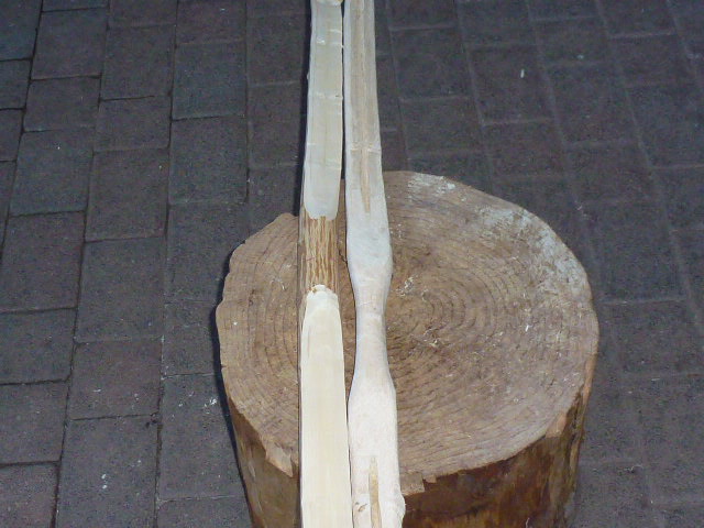 So,Liguster mit Ziehmesser runtergeschnitten und beim Holler Griff grob rausgearbeitet.