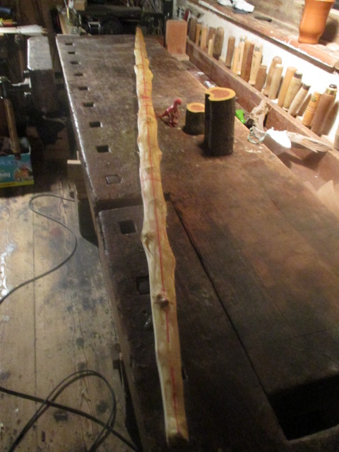 Nachdem ich den Prügel(Faulbaum) aus der Werkstatt geholt hatte, und 6 Tage in der Wohnung hatte, hab ich ihn nochmal etwas weiter runter-geraspelt.