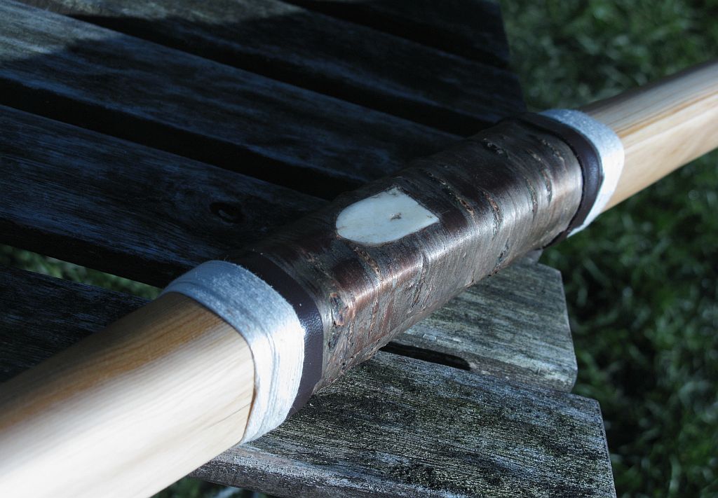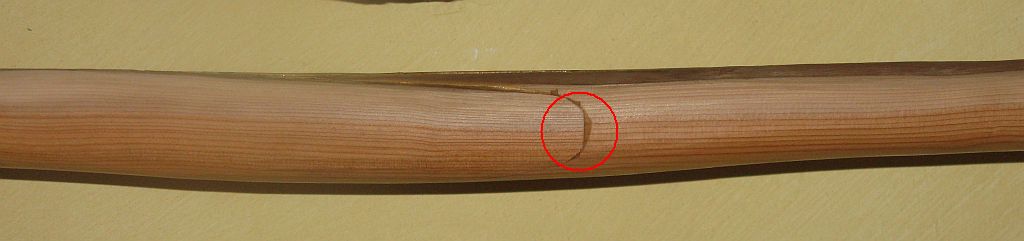 Die Kerben sind so tief und so weit draussen, um dem Druck der Sehne auf das Eibenholz entgegenzuwirken. Sieht schon etwas angespleisst aus, das stimmt, aber auch schön